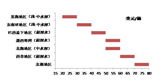2)盡管絕大部分地區(qū)海洋油氣開采的盈虧平衡點(diǎn)(考慮了固定成本和邊際成本的收支平衡點(diǎn))在80美元/桶以下,但由于海洋油氣開發(fā)的風(fēng)險(xiǎn)較大,其資本收益率要求較高(可達(dá)30%及以上),隨著長期油氣開發(fā)仍將向深水進(jìn)軍,油價(jià)不可能長期停留在當(dāng)前的水平。
