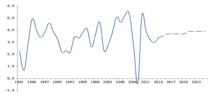 1)IMF在4月份預(yù)測(cè),2015年世界GDP增速3.5%;發(fā)達(dá)經(jīng)濟(jì)體增長將從2008-2014年的1.3%略升至2015-2020年的1.6%;新興經(jīng)濟(jì)體增長將從從2008-2014年的6.5%降至2015-2020年的5.2%。