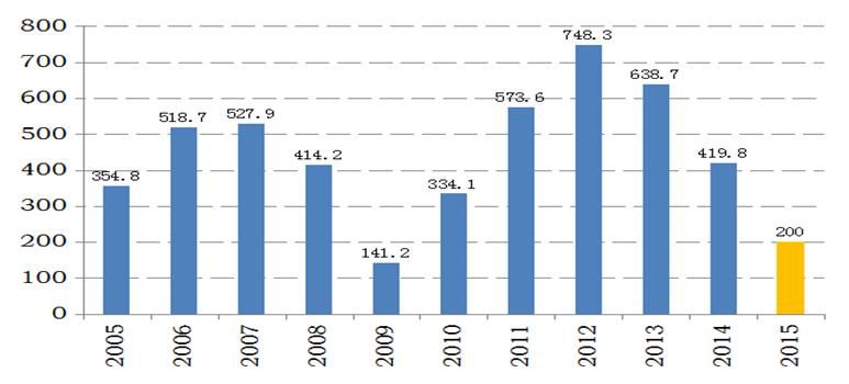 1)三大主力船型市場均處于下行狀態(tài),2015年總體情況不容樂觀,成交量較上一年大幅萎縮至7000萬載重噸左右。