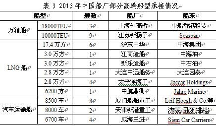 但部分高端船型依然取得了重要突破,特別是在萬箱船、LNG船和汽車運(yùn)輸船方面,其中上海外高橋船廠獲得3艘1.8萬TEU集裝箱船,江南造船、太平洋海工等船廠獲得了8艘中小型LNG船,廈門船舶重工等3家船廠獲得14艘大型汽車運(yùn)輸船。另一方面,這些高端船型船價(jià)較韓國普遍較低,后期生產(chǎn)經(jīng)營的壓力非常大,中國船廠在高端船型方面的綜合競爭力仍有待提高。