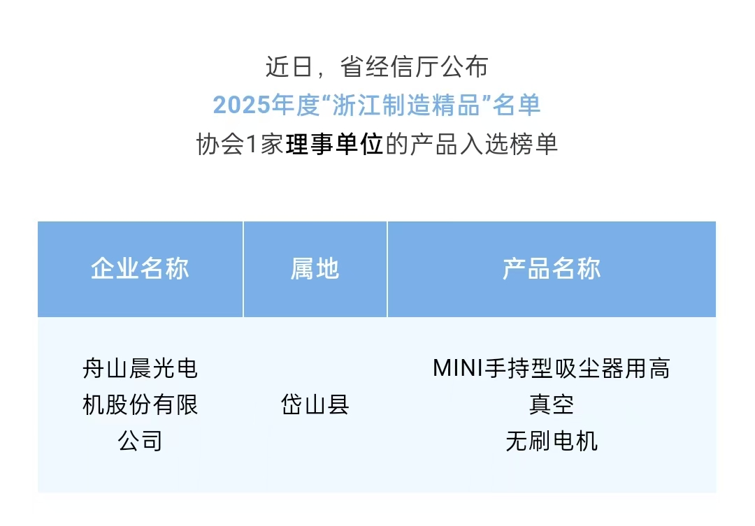 晨光電機(jī)產(chǎn)品成功入選,不僅是對(duì)其企業(yè)技術(shù)創(chuàng)新能力、質(zhì)量管理水平及品牌價(jià)值的高度肯定,更彰顯了行業(yè)標(biāo)桿的示范效應(yīng)。這一殊榮將激勵(lì)協(xié)會(huì)會(huì)員企業(yè)以更高標(biāo)準(zhǔn)推進(jìn)技術(shù)創(chuàng)新、強(qiáng)化質(zhì)量管控,形成"比學(xué)趕超"的良性競(jìng)爭(zhēng)氛圍,為舟山經(jīng)濟(jì)高質(zhì)量發(fā)展注入強(qiáng)勁動(dòng)能,助力區(qū)域產(chǎn)業(yè)向高端化、創(chuàng)新化方向加速躍升。
