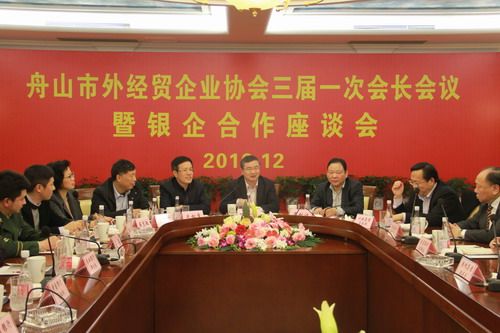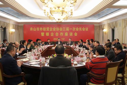 2016年12月20日下午,舟山市外經(jīng)貿(mào)企業(yè)協(xié)會(huì)在朱家尖和潤(rùn)集團(tuán)總部召開三屆一次會(huì)長(zhǎng)會(huì)議暨銀企合作座談會(huì),市政府副市長(zhǎng)黃國華出席會(huì)議并作重要講話,出席會(huì)議還有:市商務(wù)局局長(zhǎng)干松章、副局長(zhǎng)盛惠敏、舟山市出入境檢驗(yàn)檢疫局、舟山海關(guān)、舟山邊檢、舟山農(nóng)業(yè)銀行、中國銀行、交通銀行、浦發(fā)銀行、工商銀行、建設(shè)銀行領(lǐng)導(dǎo)和協(xié)會(huì)會(huì)長(zhǎng)、副會(huì)長(zhǎng)單位領(lǐng)導(dǎo)。
